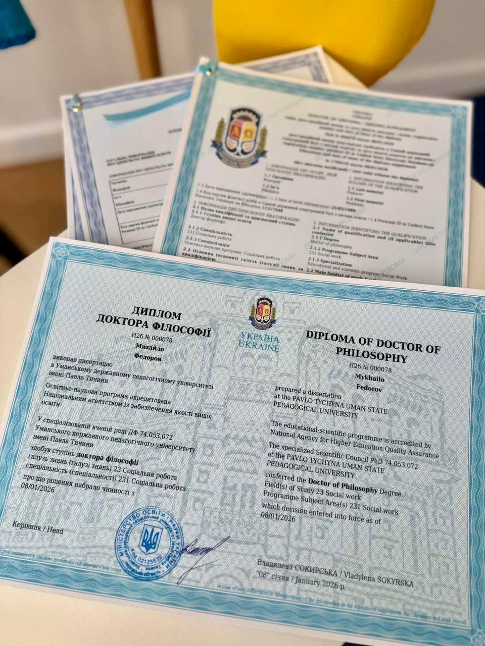 Вітаємо з отриманням диплома доктора філософії у галузі знань 23 Соціальна робота!