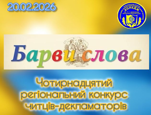 20 лютого 2026 року в Комунальному закладі «Уманський гуманітарно-педагогічний фаховий коледж ім. Т.Г.Шевченка Черкаської обласної ради» відбувся ХІV Регіональний конкурс читців-декламаторів «Барви слова». Цьогоріч учасники Конкурсу проявили свої таланти offline (очно), або за погодженням із оргкомітетом взяли участь online. Детальніше