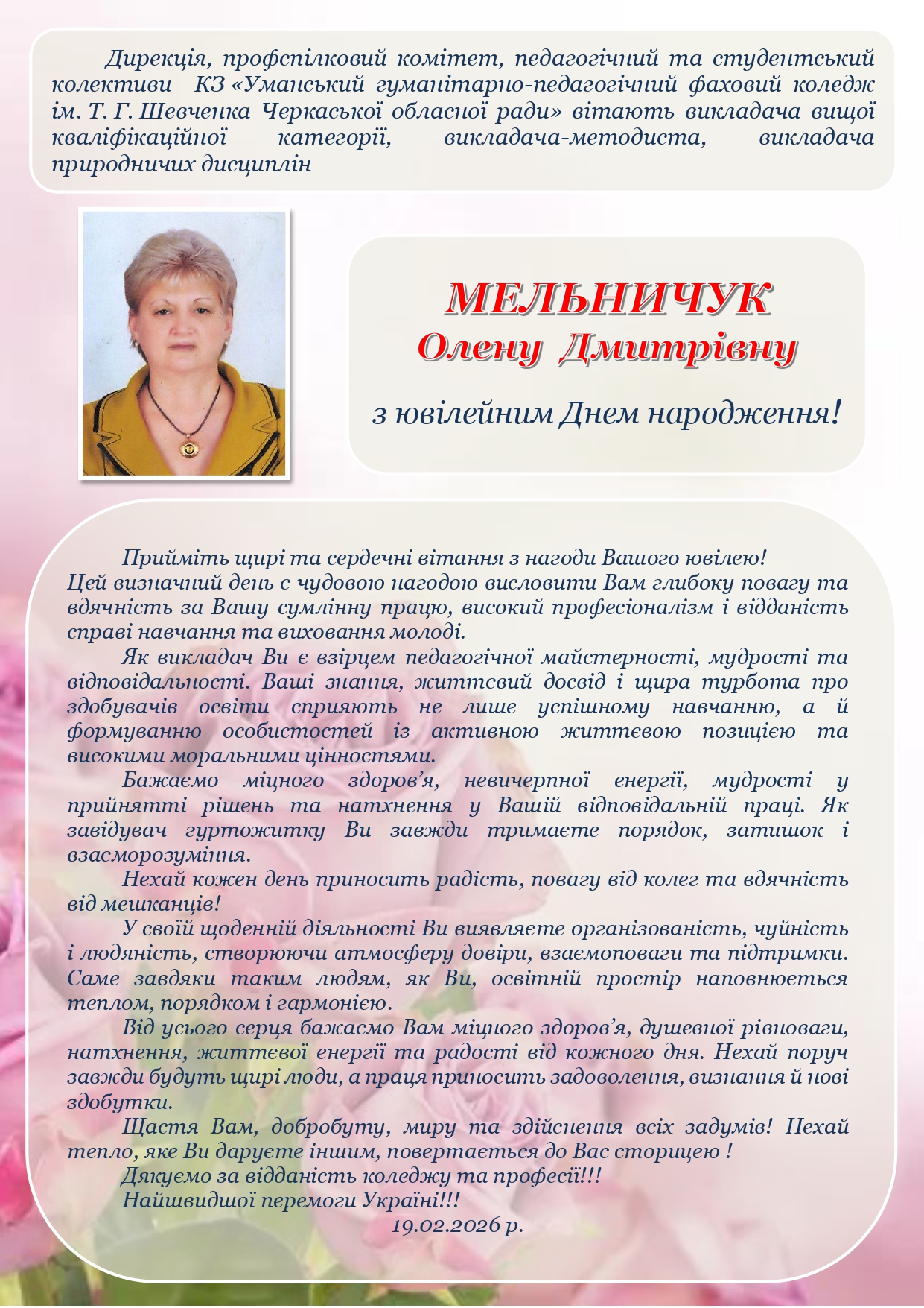 18 лютого 2026 року в Комунальному закладі «Уманський гуманітарно-педагогічний фаховий коледж ім. Т.Г. Шевченка Черкаської обласної ради» відбулося чергове засідання навчально-методичної ради. Детальніше