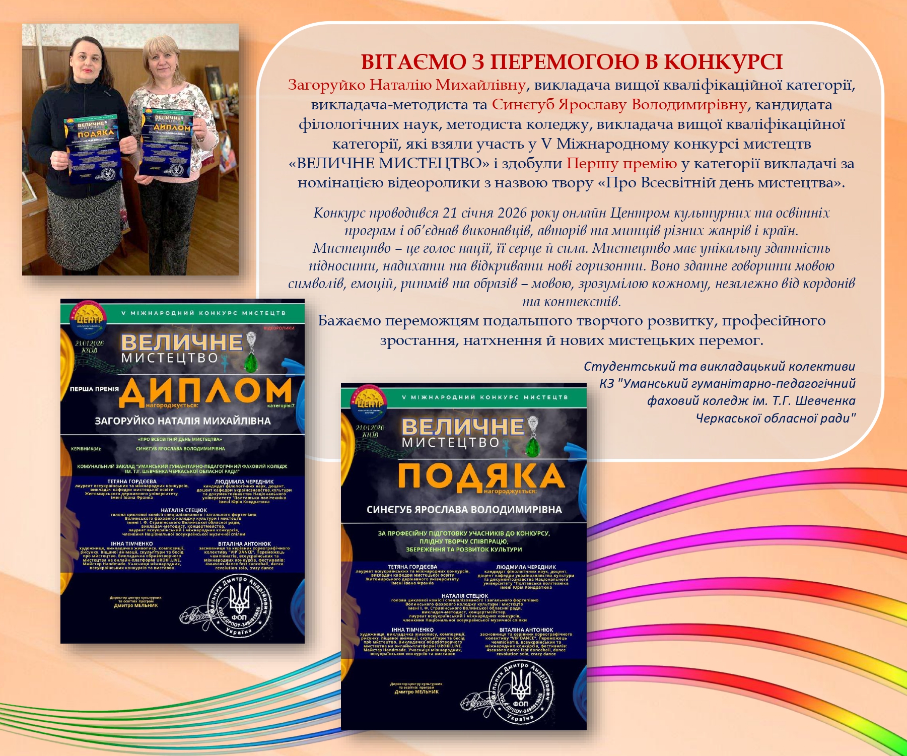 Для викладачів КЗ "УГПФК ім. Т. Г. Шевченка Черкаської обласної ради", фахівцями та волонтерами напрямку Психічне здоров’я та психосоціальна підтримка була проведена психоедукаційна сесія на тему «Надмірна тривога. Самодопомога». Детальніше