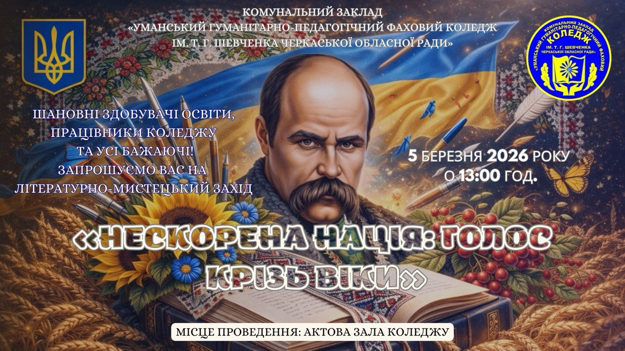 03.03.2026 року у межах декадника циклової комісії української мови і літератури з методикою навчання в КЗ «Уманський гуманітарно-педагогічний фаховий коледж ім. Т.Г. Шевченка» відбувся змістовний та актуальний круглий стіл: «УКРАЇНСЬКЕ СЛОВО В КООРДИНАТАХ ЧАСУ: ВІД ДІАЛЕКТНИХ ДЖЕРЕЛ ДО ЕКОЛОГІЇ НАЦІОНАЛЬНОГО БУТТЯ». Детальніше