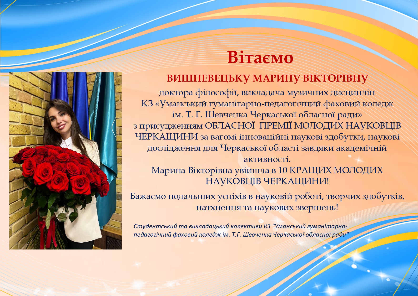 Свої творчі роботи презентують здобувачі освіти та викладачі циклової комісії мистецьких дисциплін та методик навчання (образотворче мистецтво, хореографія) комунального закладу «Уманський гуманітарно-педагогічний фаховий коледж ім. Т. Г. Шевченка Черкаської обласної ради» (голова циклової комісії — викладач вищої кваліфікаційної категорії, викладач-методист Козак Наталія Дмитрівна).